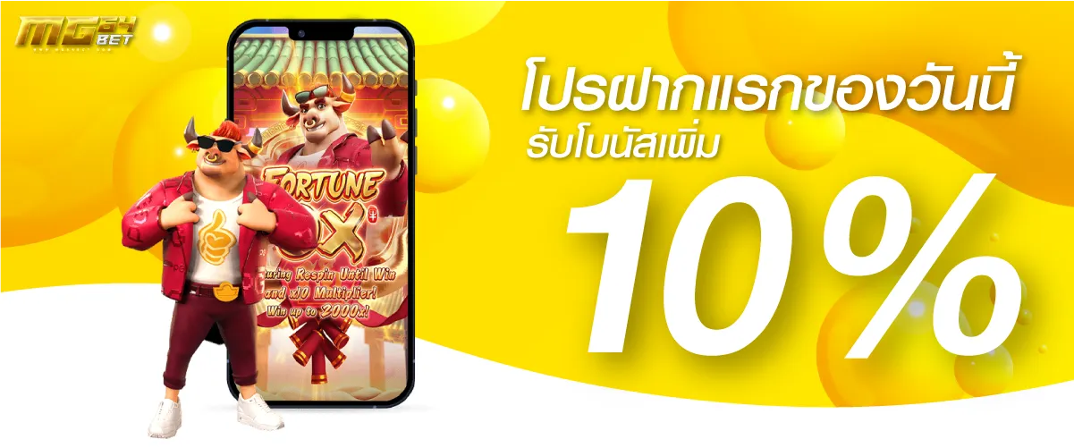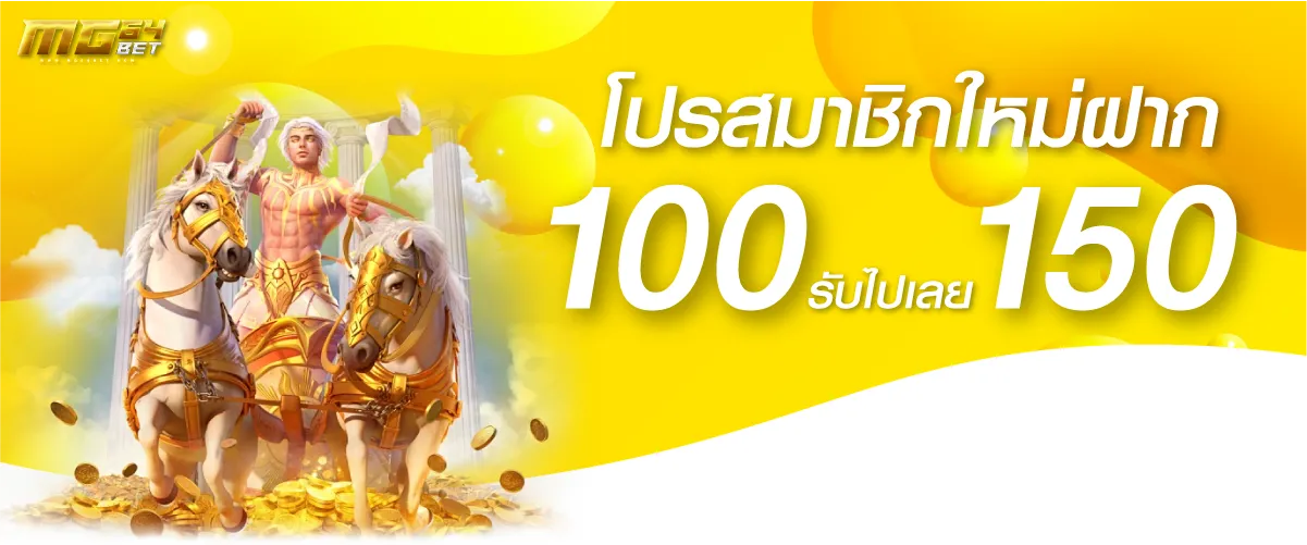 MG64BET มาพร้อมกับโปรโมชั่นสุดพิเศษที่จะทำให้การเริ่มต้นเดิมพันของคุณสนุกและคุ้มค่ามากยิ่งขึ้น โดยเฉพาะสำหรับสมาชิกใหม่ที่เพิ่งเข้ามาร่วมสนุกกับเรา เรามีโปรโมชั่นสุดพิเศษ "รับโบนัส 100%" ที่จะเพิ่มเงินในบัญชีของคุณเป็นสองเท่าทันทีที่ทำการฝากครั้งแรก
